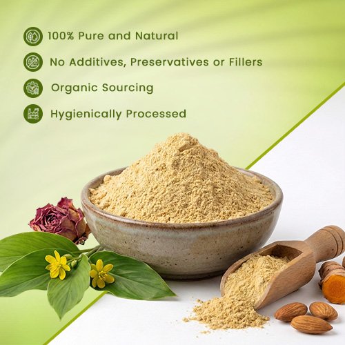 A 100% natural, multi-grain and herbal cleansing blend crafted from 16 traditional botanicals. This sun-dried powder serves as a soap-free alternative for daily skincare rituals. it is widely recognized as <b>Nalangu Maavu</b> or <b>Kuliyal Podi</b> (Tamil), <b>Sunnipindi</b> or <b>Nalugu Pindi</b> (Telugu), and <b>Snana Pudi</b> (Kannada). In Maharashtra, it is traditionally called <b>Utane</b>, and in Ayurvedic or Sanskrit contexts, it is known as <b>Snana Choornam</b> or <b>Udvartana</b>. In English, it is frequently described as <b>Herbal Bath Powder</b>, <b>Natural Body Scrub</b>, <b>Soap-Free Cleanser</b>, or <b>Bridal Glow Powder</b>.